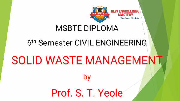 This course provides a comprehensive understanding of solid waste management within the context of civil engineering principles. Students will learn about various techniques, methods, and technologies used in managing solid waste effectively and sustainably. The course covers topics such as waste collection, transportation, disposal, recycling, and resource recovery.
