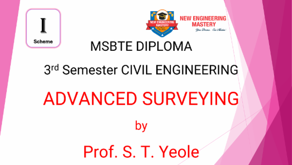 This course on Advanced Surveying for Diploma in Civil Engineering MSBTE is designed to provide students with in-depth knowledge and practical skills in advanced surveying techniques used in the field of civil engineering. Students will learn about the latest technologies and tools used in surveying, and how to apply them effectively in real-world projects. The course covers topics such as plane table surveying, theodolite surveying, techemetric surveying,curve setting, advanced surveying equipments and remote sensing GIS & GPS.